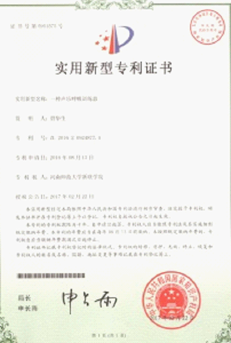 3月16日,我校艺术学院教师贾华生接到中华人民共和国国家知识产权局授权的“一种声乐呼吸训练器”实用新型专利证书(专利号:ZL 201620924877.4),这是我校首次荣获国家知识产权局授权的专利,实现我校在专利授权上的零突破。