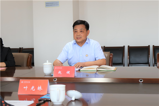 会上,校长赵健首先代表学校向叶主席一行的到来表示热烈欢迎,对郑州市社科联一直以来为学校发展给予的关心和支持表示诚挚的感谢。赵校长从学校概况、师资队伍、人才培养、科学研究和哲学社会科学研究基地建设情况等方面进行了汇报。赵校长表示,本次调研不仅是对中原科技学院研究基地建设的考察,更是对学校各项工作的指导和促进,学校将以此次调研指导为契机,以区域经济社会发展需求为导向,以学科建设为龙头,以平台建设为抓手,聚焦郑州市“四高地、一枢纽、一重地和一中心”建设目标,开展针对性、应用性的对策研究,积极建言献策,助推郑州现代化高质量发展。